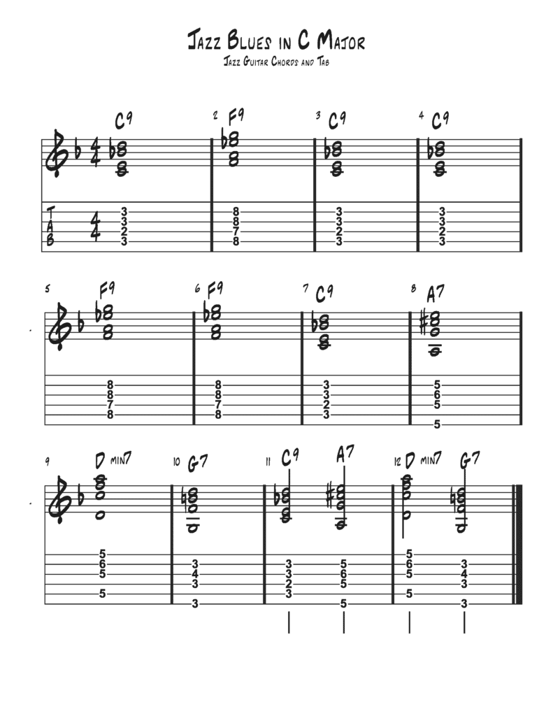 - Play quarter note comping of the changes (blues in C) – try to lock in with the drums and specifically the hihat.
