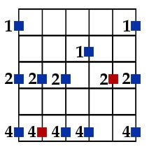 - All the other notes = blue/purple squares